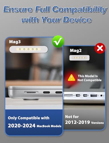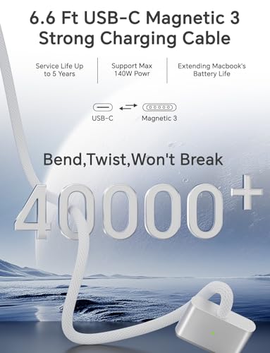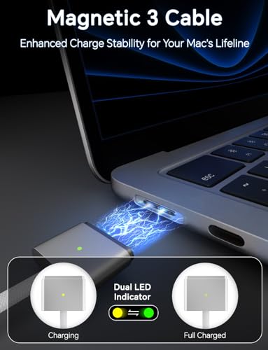 Magnetic Cable for Safe Connection: The included 2M/6.6FT robust magnetic charging cable offers a safe and steady connection to your MacBook, minimizing unintended disconnects and enhancing system safety. The built-in LED indicator shows the charging standing, providing you with immediate suggestions in your system’s energy stage.